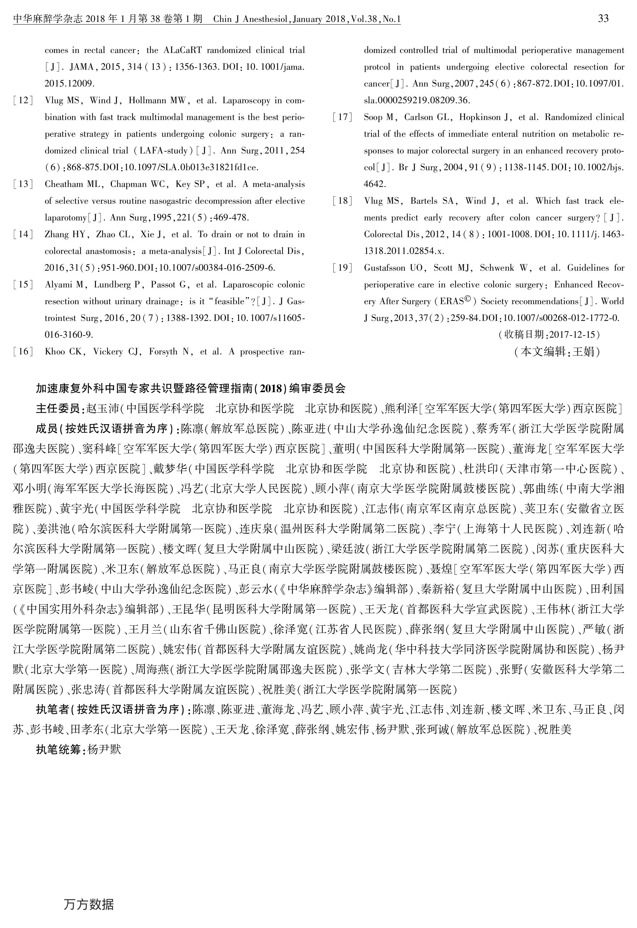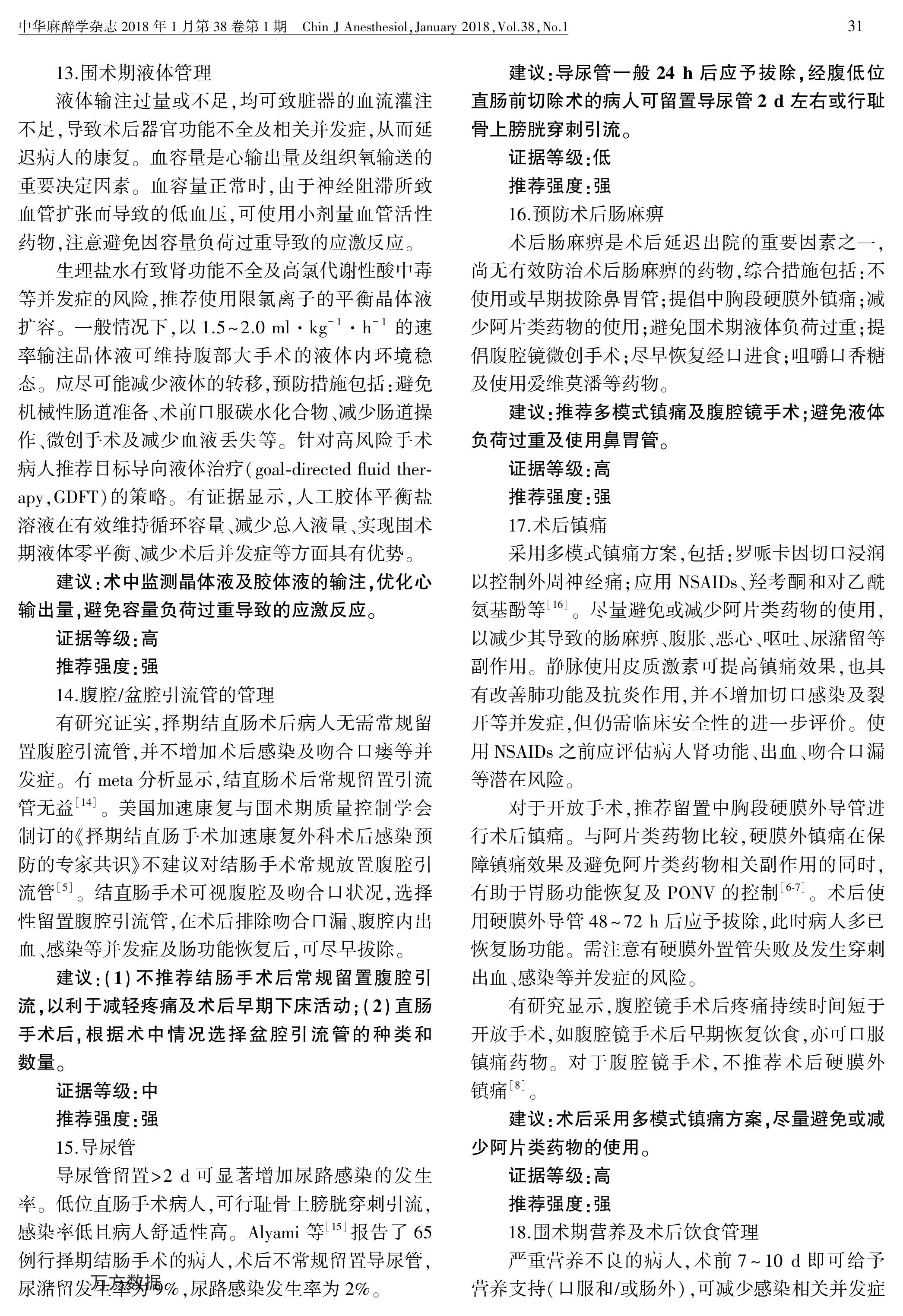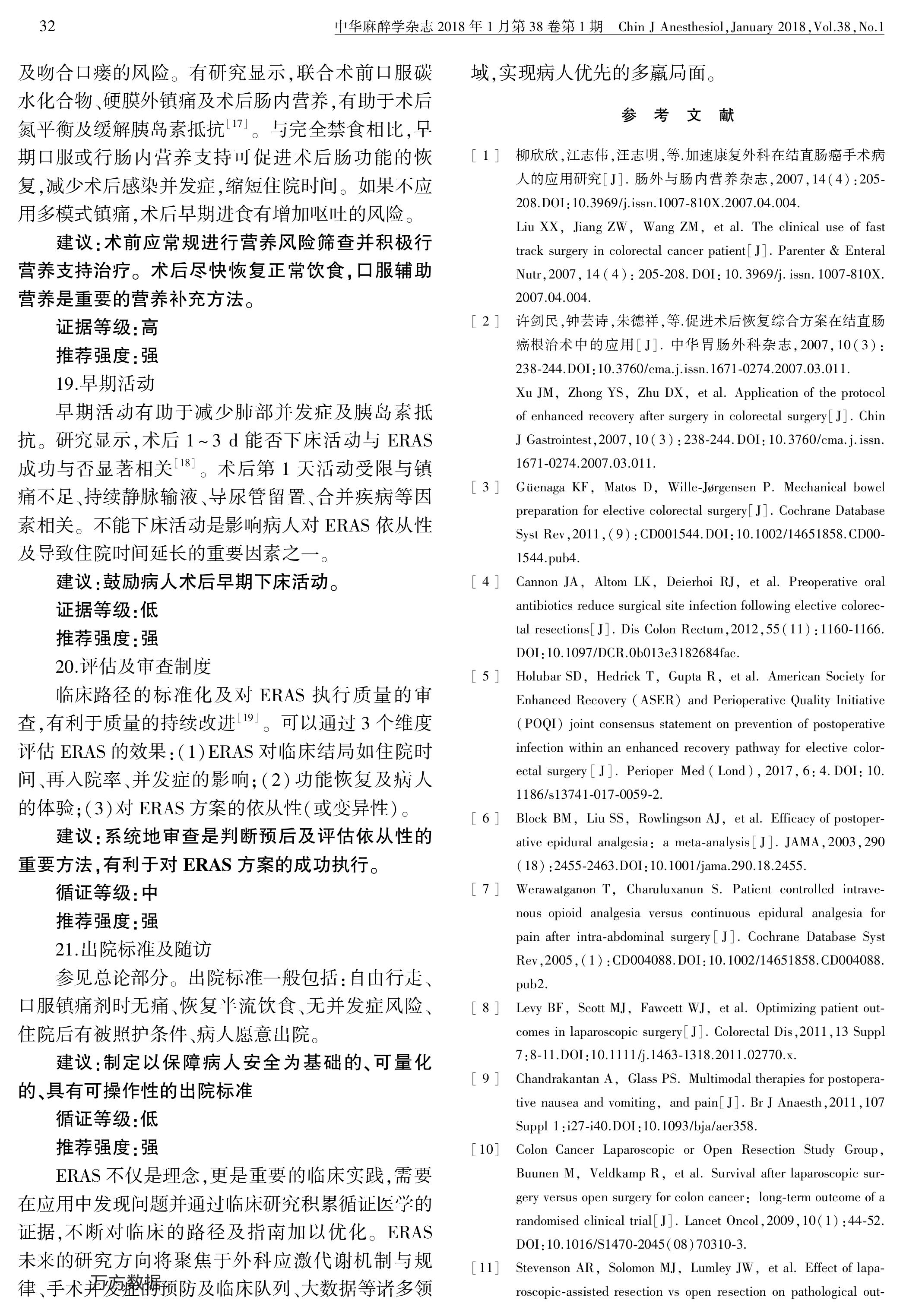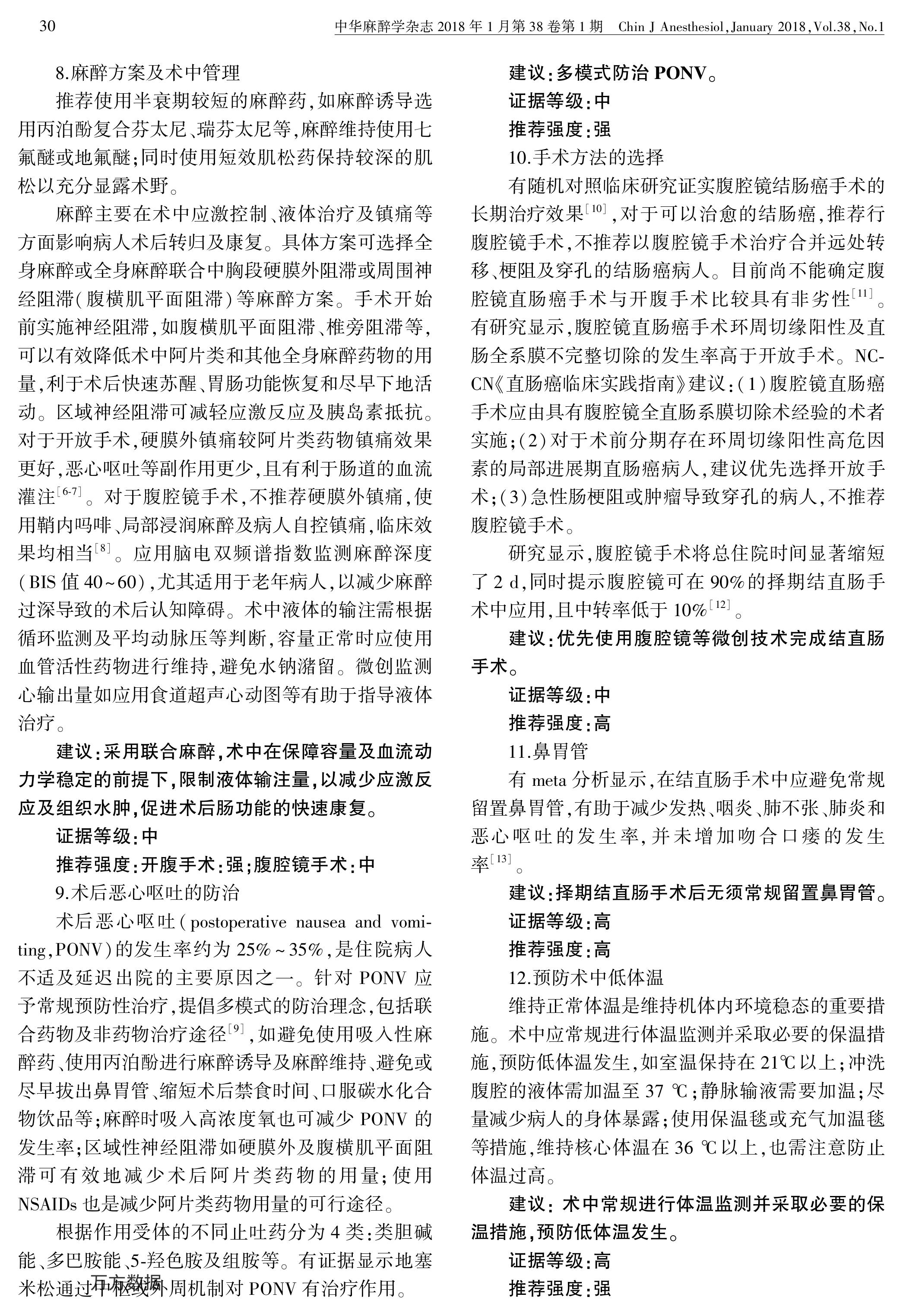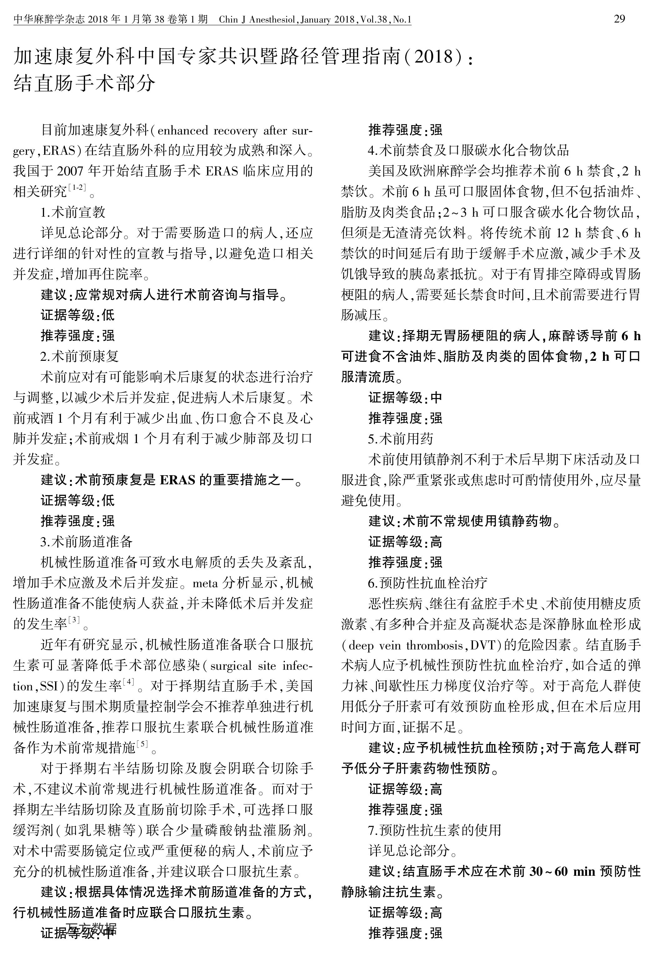 加速康復(fù)外科中國專家共識(shí)暨路徑管理指南(2018):結(jié)直腸手術(shù)部分