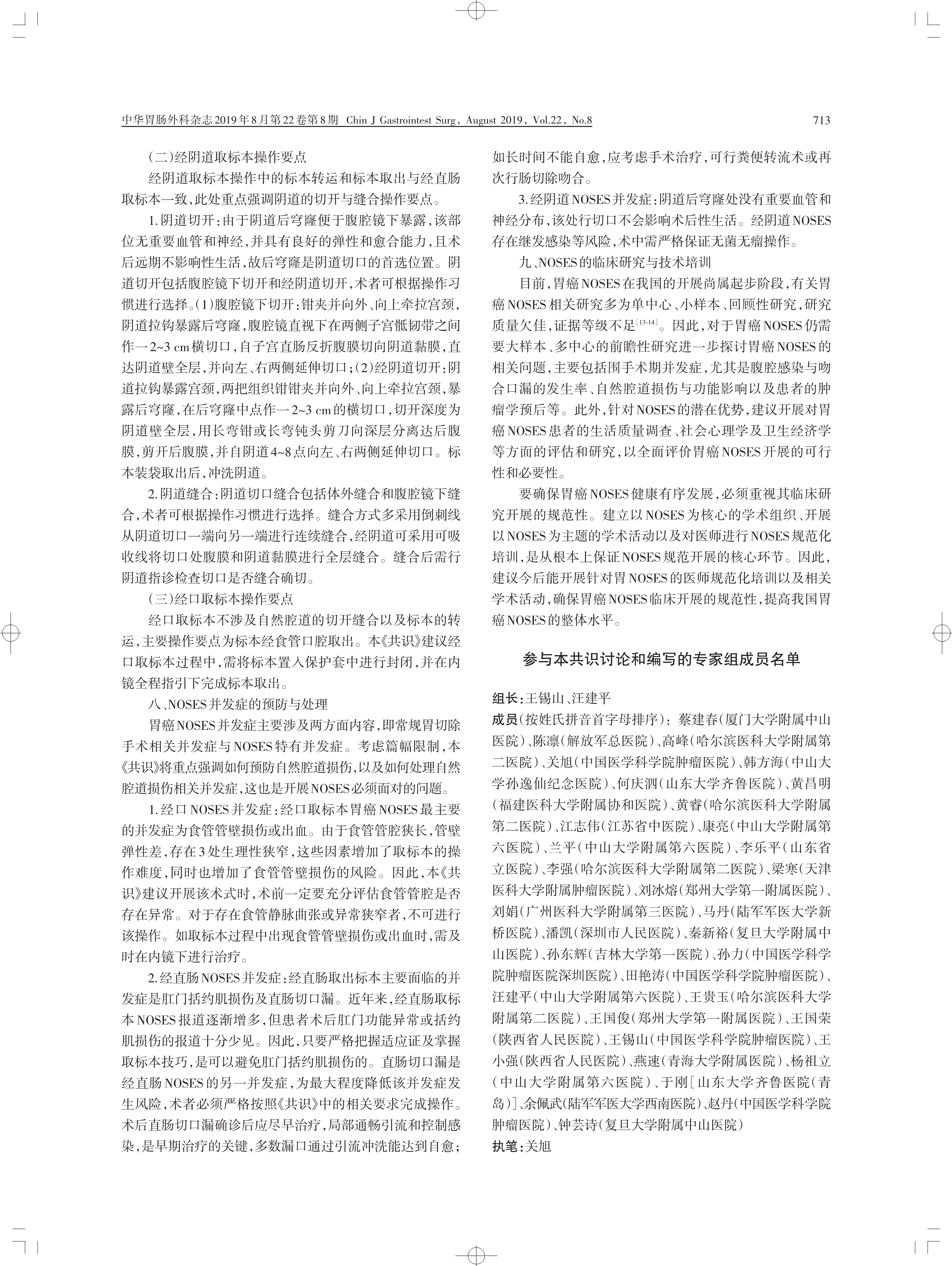 胃癌經(jīng)自然腔道取標(biāo)本手術(shù)專家共識 (2019 版)
