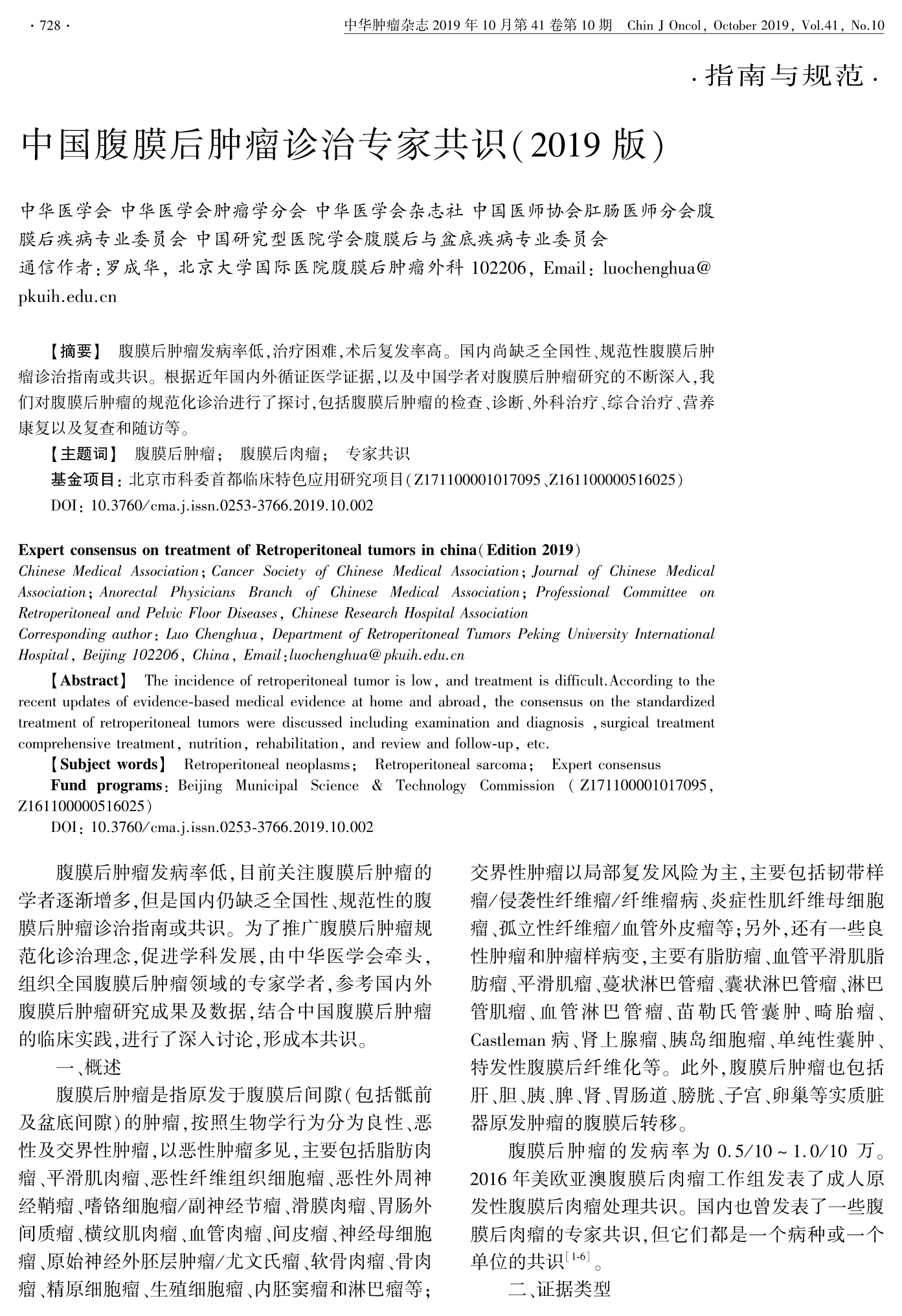 中國腹膜后腫瘤診治專家共識(2019版)